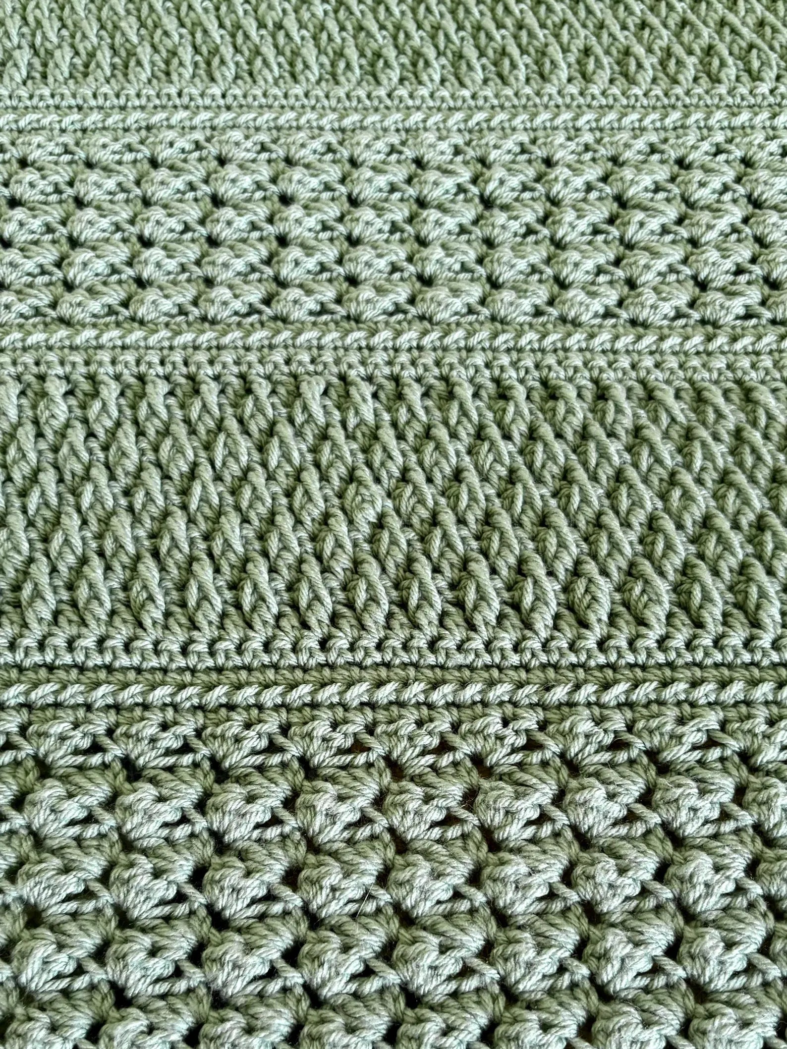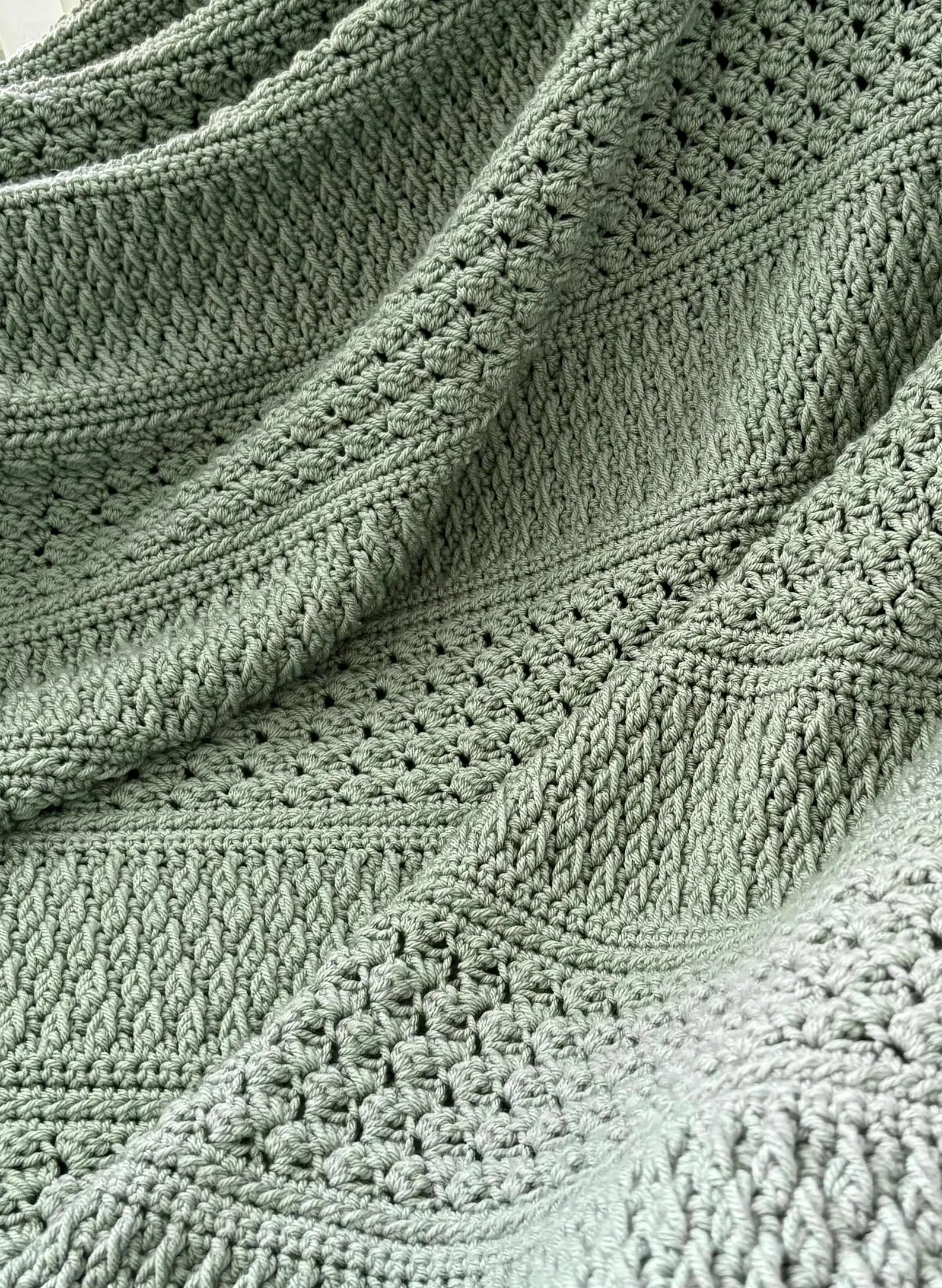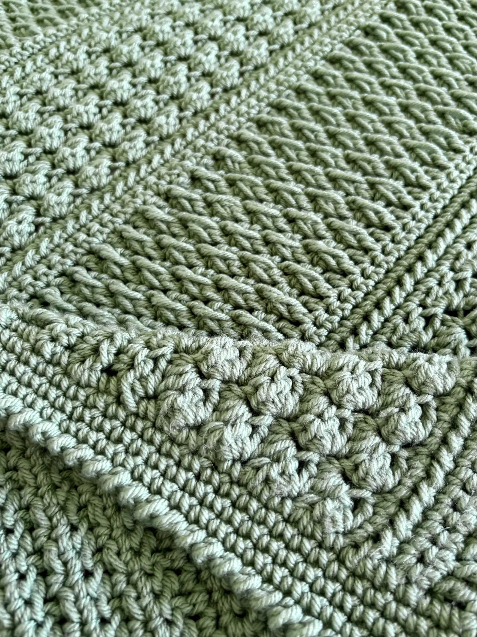 The finished blanket has beautiful texture, great drape, and a cozy feel without being too heavy.