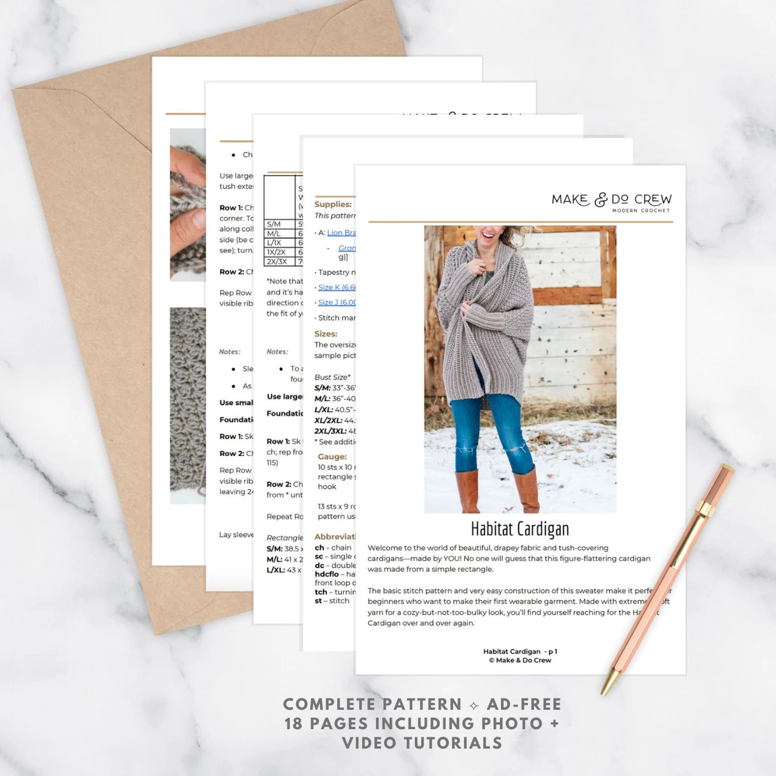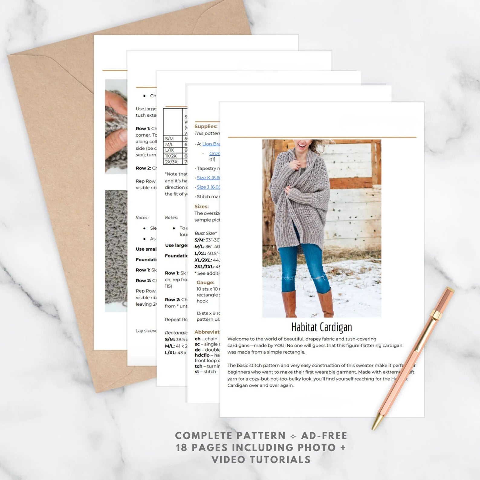 Create a beautiful oversized cardigan using a simple rectangle construction that makes this project relaxing and enjoyable to complete. This PDF guide walks you through the entire process so you can confidently create your own cozy cardigan.